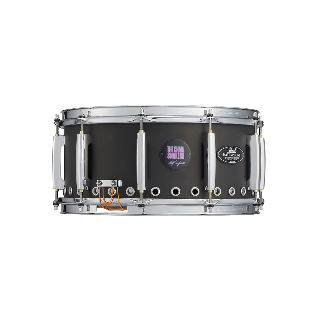 Pearl Signature de Matt McGuire est conçue pour apporter à tout batteur qui en joue le son que Matt exige pour The Chainsmokers. Son caractère unique provient d’un fût en acier laminé de 1 mm qui comporte 30 évents renforcés de 1/3" autour du bord inférieur. Cette conception unique améliore la réponse de la caisse claire, en canalisant la force de chaque coup à travers sa profondeur de 6,5 pouces et en l’envoyant dans toutes les directions comme une onde de choc !