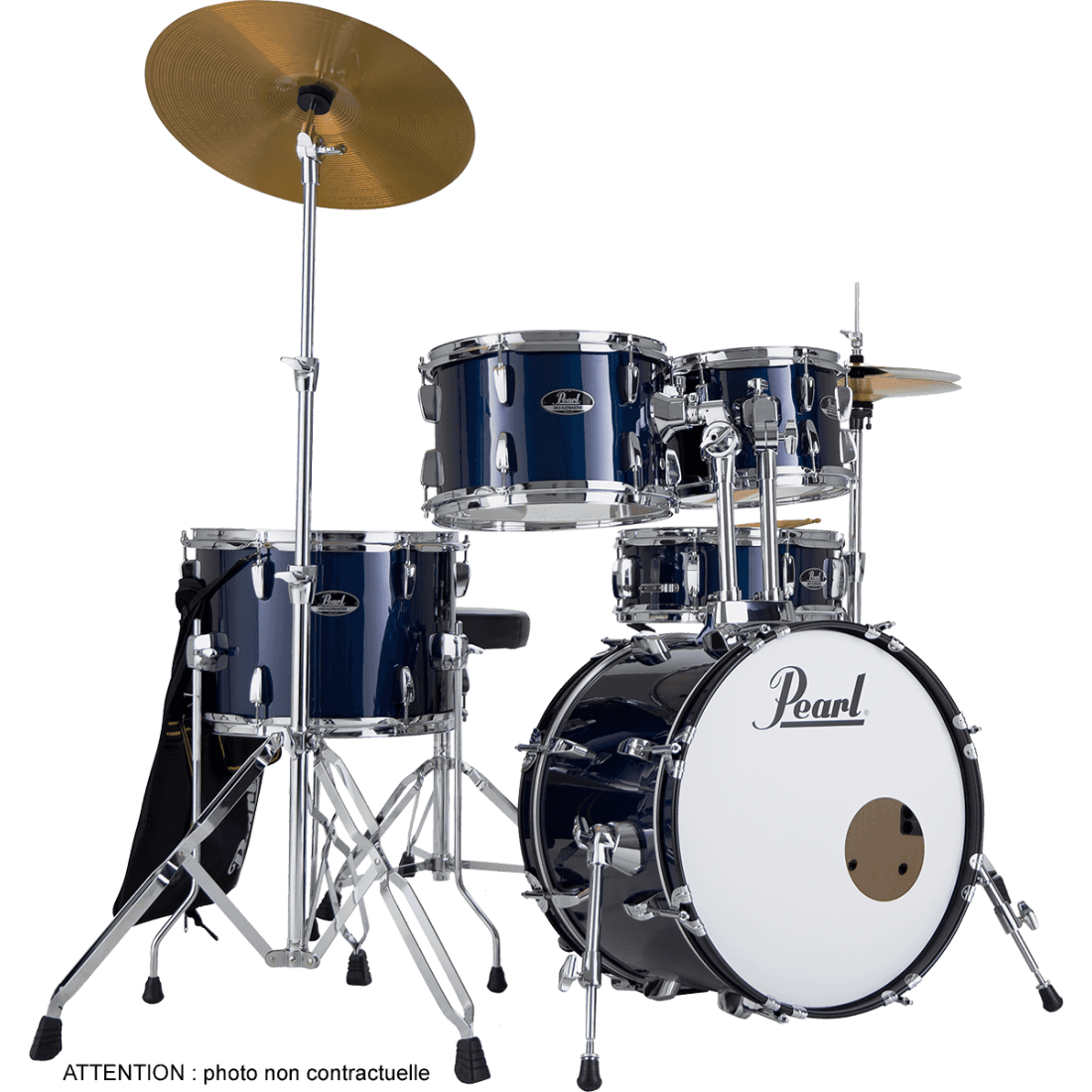 - Accessoires : pédale de grosse caisse P-50 + siège D-50 + set de cymbales Sabian Solar (hi-hat 14", crash/ride 16") + paire de baguettes + housse de baguettes