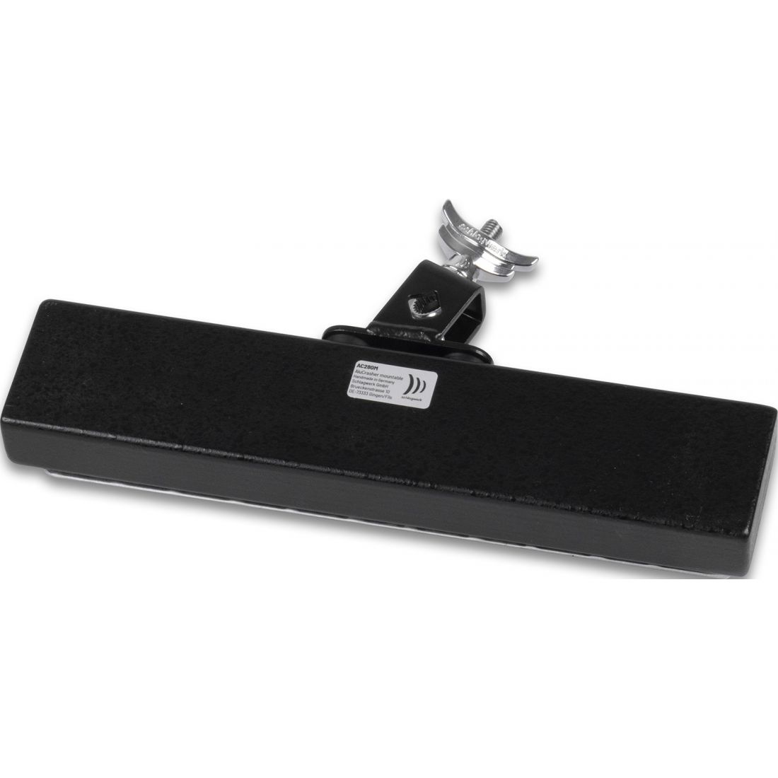 Avec l'AluCrasher, Schlagwerk propose un "crasher" innovant avec une large plage de dynamique. Lorsqu'il est frappé fort le son arrive à passer au-dessus des autres instruments sans être agressif et lorsqu'il est frappé doucement, un son riche de caisse claire est produit. Tout cela est dû à l'utilisation de la technologie DynaCrasher et à la combinaison d'une feuille d'aluminium et de cymbalettes en acier au carbone. Que ce soit en studio ou sur scène, l'AluCrasher élargit votre spectre sonore et se prête à un large éventail de styles musicaux. Il peut être joué à la main, avec des baguettes, des fagots ou des balais. L'installation est très simple il suffit de le fixer grâce à la pince, à un stand percussion faisant 8 à 10 mm de diamètre.