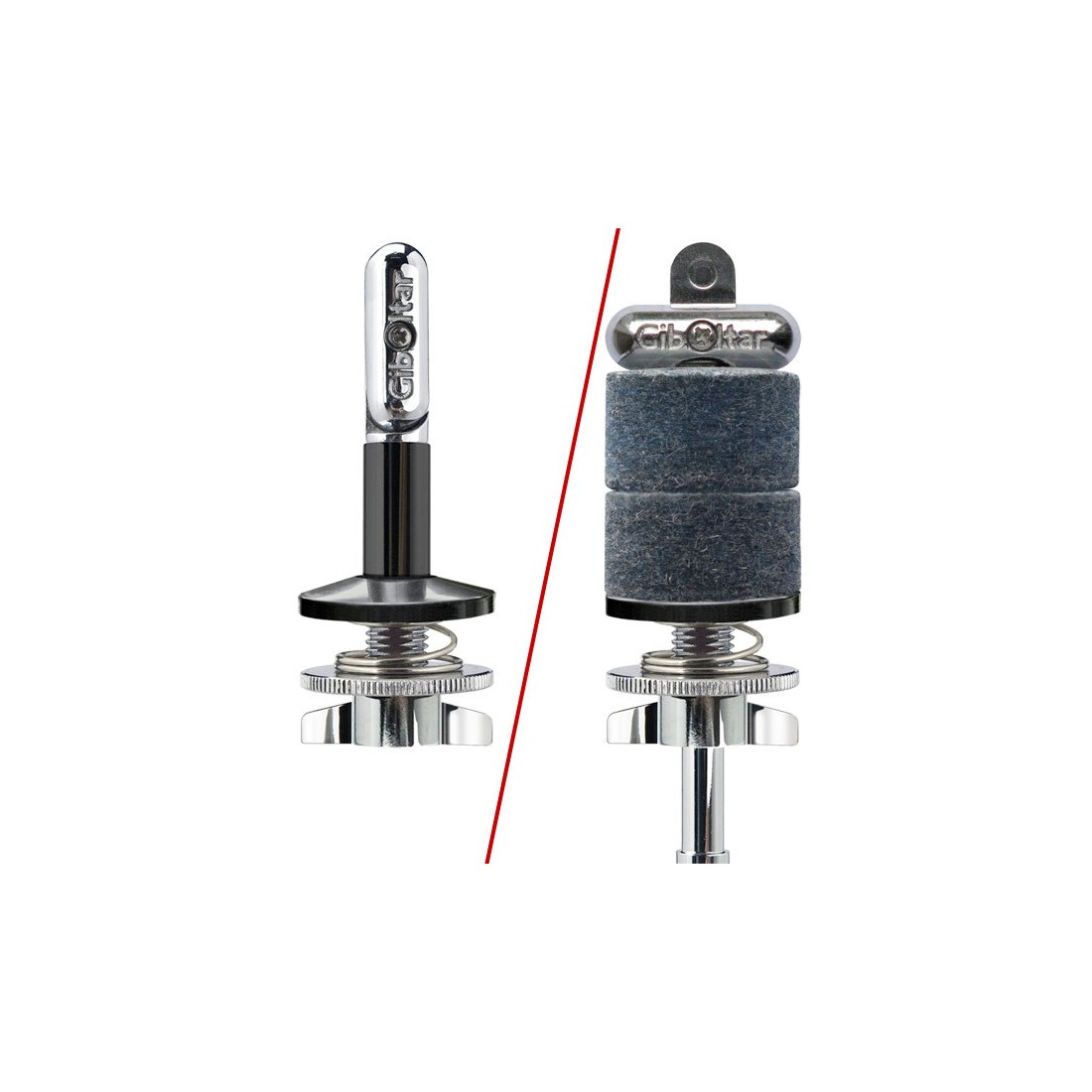 Système innovant de tiller sans papillon qui s'adapte en le vissant simplement sur tous les stands cymbales disposant d'une tige filetée de 8mm. Mousses fournies.
