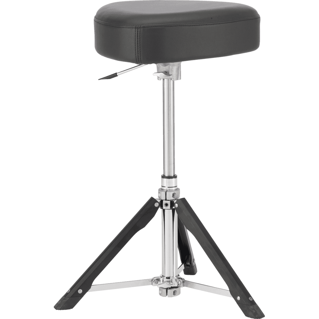Un élément fondamental. Lorsque les parents qui souhaitent améliorer le quotidien de leur tête blonde demandent à un bon prof de batterie quel élément ils doivent privilégier en particulier, ils se montrent souvent étonnés de se voir répondre que le siège et la pédale de grosse caisse sont ni plus ni moins primordiaux. En particulier quand il s’agit de batteries destinées aux amateurs / confirmés. Or, on n’imagine pas à quel point l’assise s’avère importante, et pas uniquement pour le confort de l’arrière-train. L’assise avec un grand A. Le siège incarne en effet le cœur de la batterie et c’est même ce qui différencie le percussionniste du batteur, ce dernier étant obligé d’utiliser ses pieds, et donc de travailler dès ses débuts sur la qualité de son assise. Ce terme « d’assise » regroupe en outre la façon dont on s’assoit (en l’occurrence, sur une belle galette en mousse rembourrée), mais aussi la hauteur, la stabilité du trépied, sans oublier la capacité des vis de serrage à maintenir le tout, sans risque de jeu entre le filetage et le joint. Ajoutons-y la bague mémoire à vis et un empâtement important, tout est paré avec le Pearl Roadster ! Simple et très efficace. Situé au haut de la gamme des sièges avec assise triangulaire qui permet une assise de type piano ou selle, ce siège dispose d’un revêtement confortable multicouche et aéré, d’une vis de serrage ergonomique, de pieds en aluminium allégés, et surtout d’un système de levé au gaz, de façon à pouvoir affiner au plus près le réglage souhaité. Le Pearl Roadster offre déjà une hauteur variable de 49,5 à 69,5 cm, avec un excellent rapport qualité/prix qui le place parmi les meilleurs produits du marché.