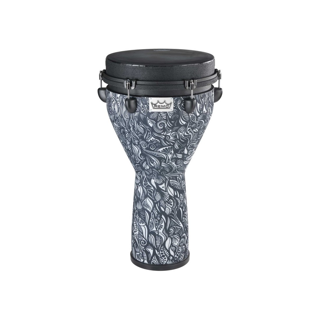 Fût: Acousticon Peau: Black Suede, résiste aux intempéries Base: Caoutchouc antidérapant Spécificité: Système d'accordage