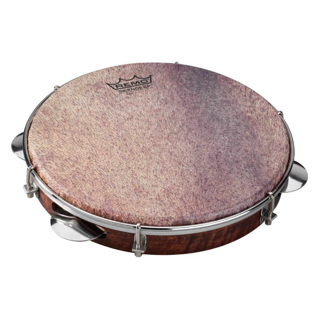 Avec peau Skyndeep ultratac type 'goat brown', cinq cymbalettes en chrome