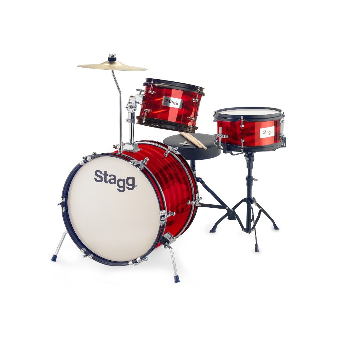 Stagg TIM JR 3/16B RD - Batterie junior 8" / 10" / 16", avec accessoires, rouge