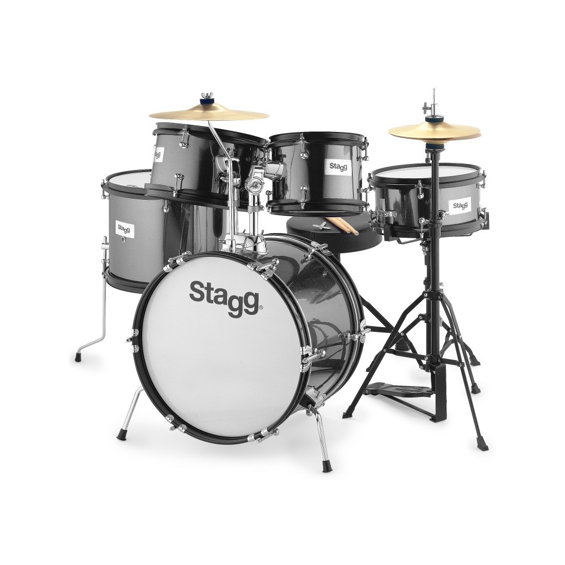 Stagg TIM JR 5/16B BK - Batterie junior 8" / 10" / 10" / 12" / 16", avec accessoires