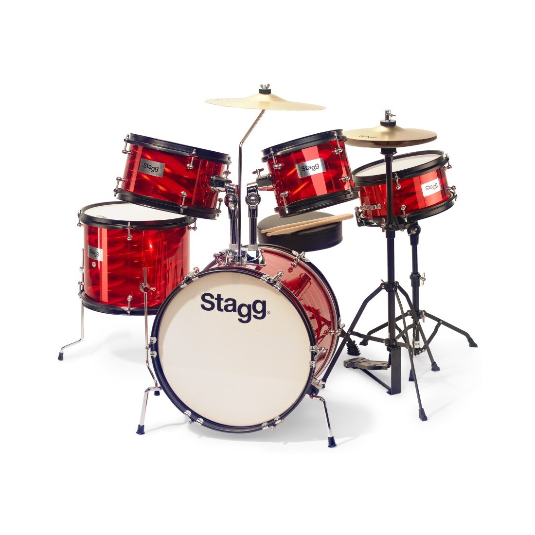 Stagg TIM JR 5/16B RD - Batterie junior 8" / 10" / 10" / 12" / 16", avec accessoires