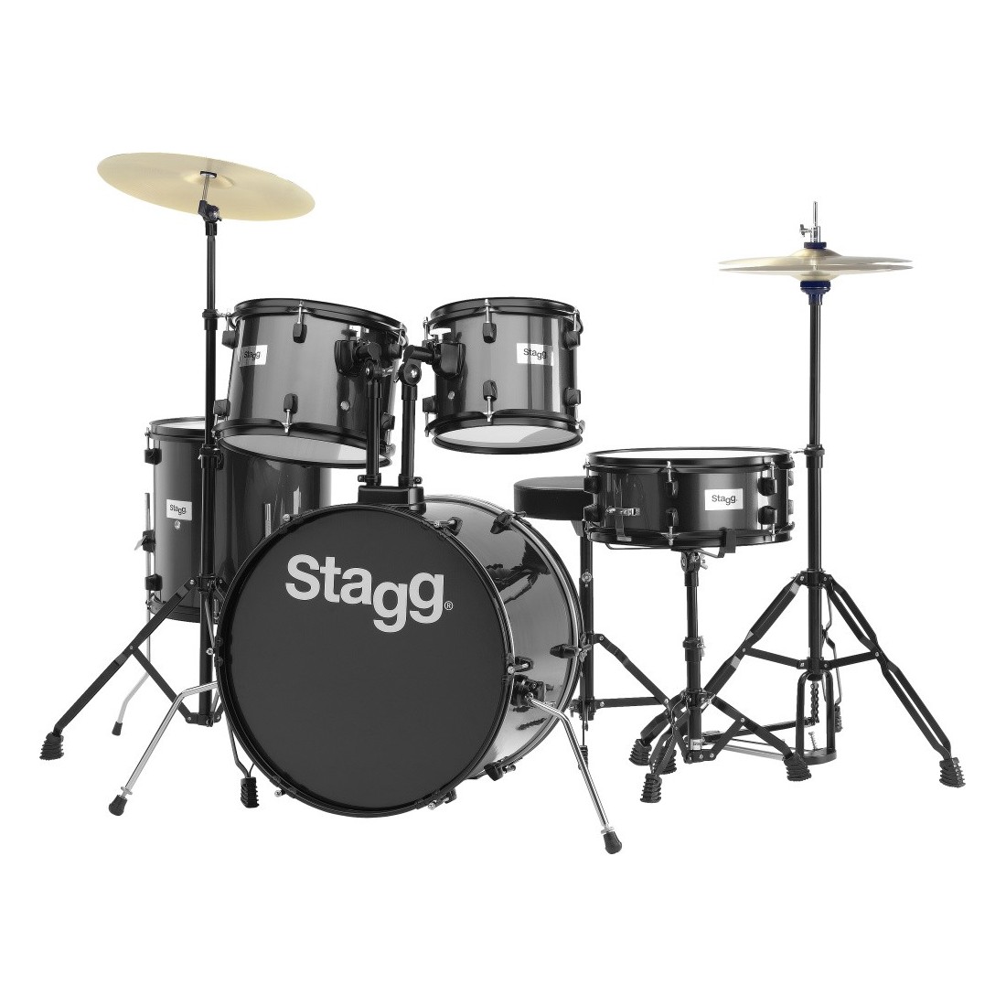 Stagg TIM120B BK - Batterie 20" Standard, 5 fûts en tilleul (6-plis) + hardware & cymbales