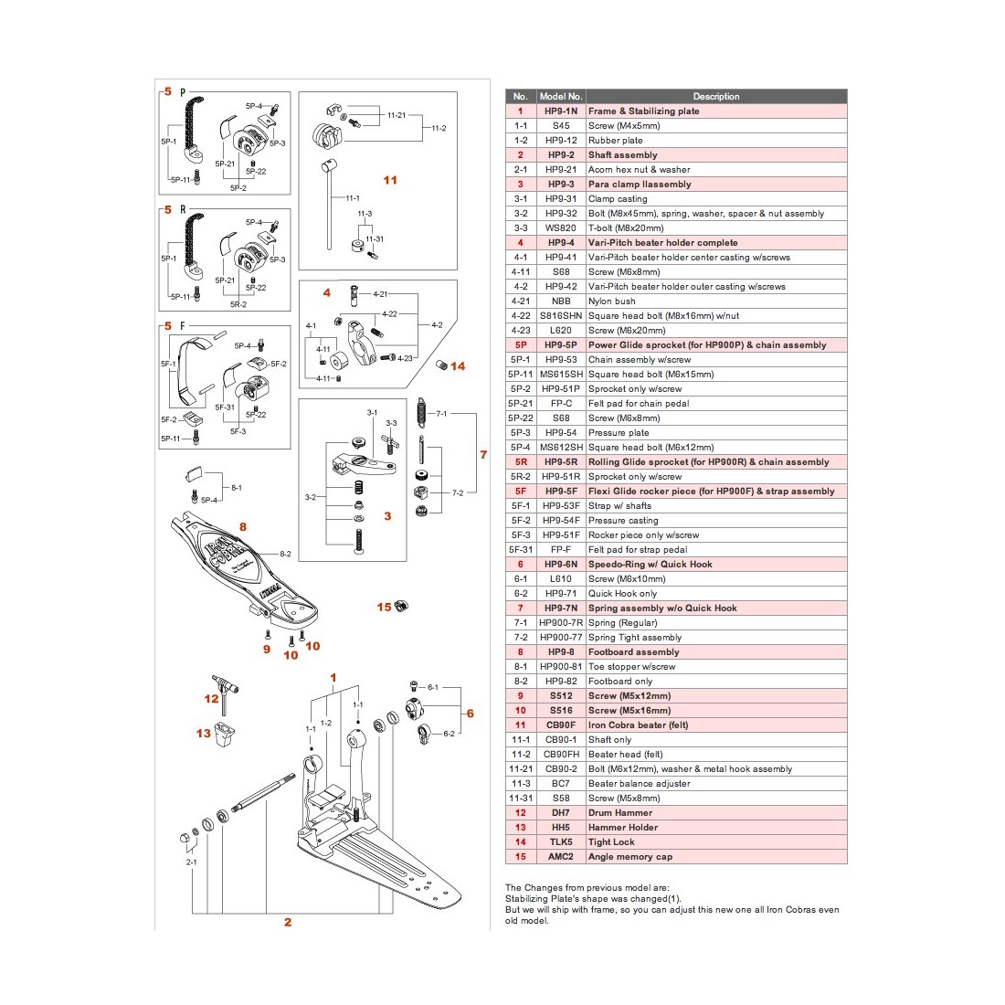 Pièces pour pédale de grosse caisse