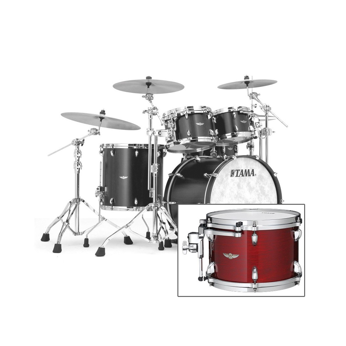TAMA est fier de proposer une nouvelle série STAR WALNUT 100% noyer, disposant de toutes les fonctionnalités de STAR, comme le système de montage Super Resonant Mounting, les chanfreins exclusifs Bearing Edge, le système d’attache Quick-Lock, etc.